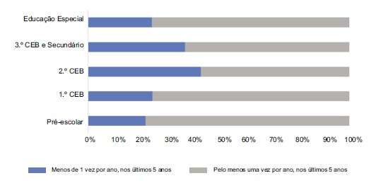 Figura 4 Frequência de formação contínua nos últimos 5 anos (%) por ciclo de ensino