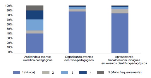 [14] A realização do teste Qui-Quadrado permitiu identificar diferenças significativas entre a participação em eventos científico-pedagógicos e o ciclo de ensino (X2(4) = 22.819, p<0.001)